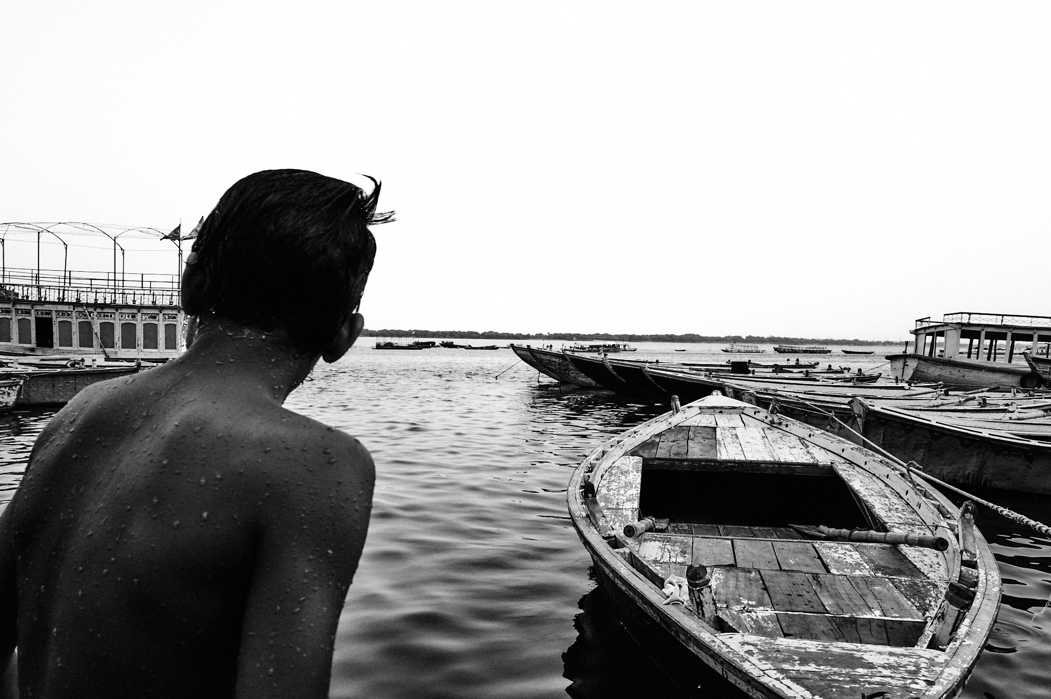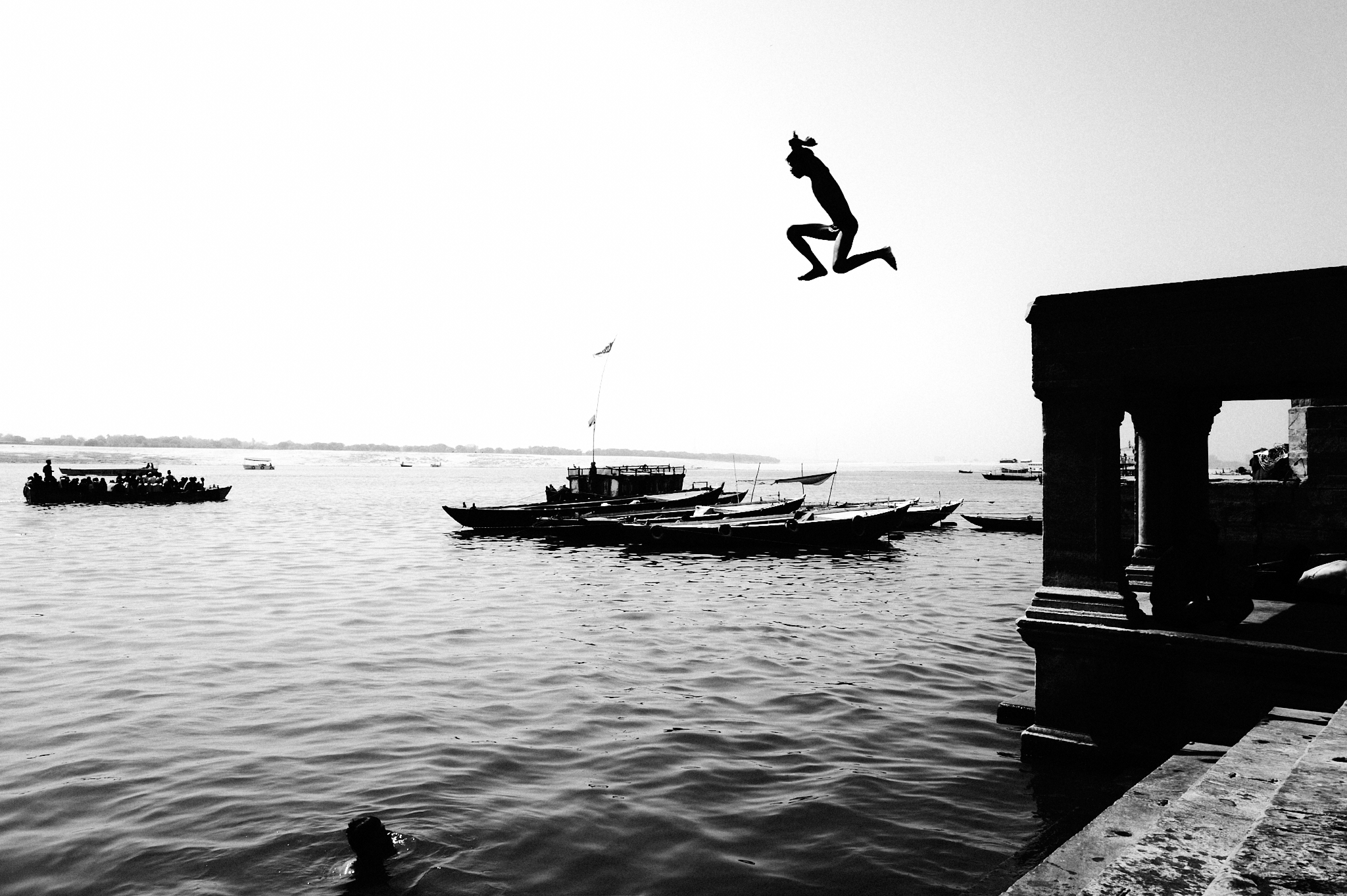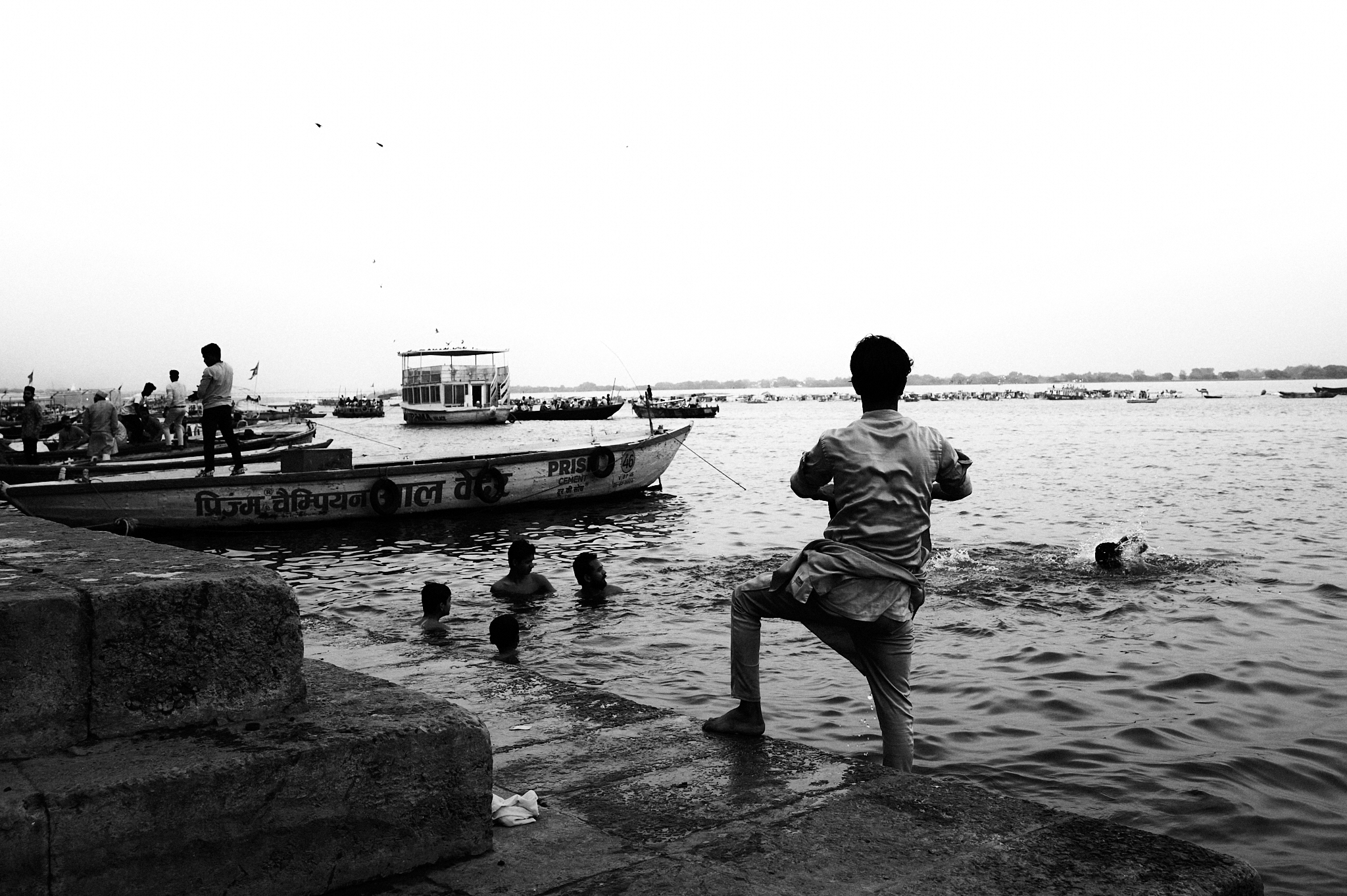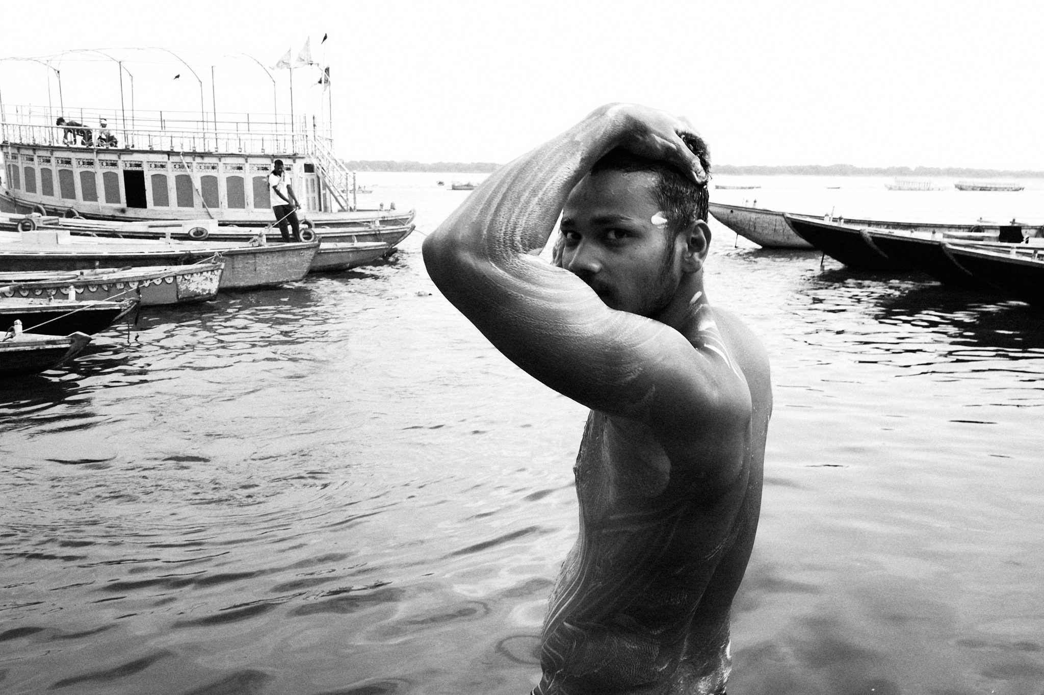 Along the River presents observations of daily human presence along the river in India, emphasizing gesture, movement, and continuity within the public space.